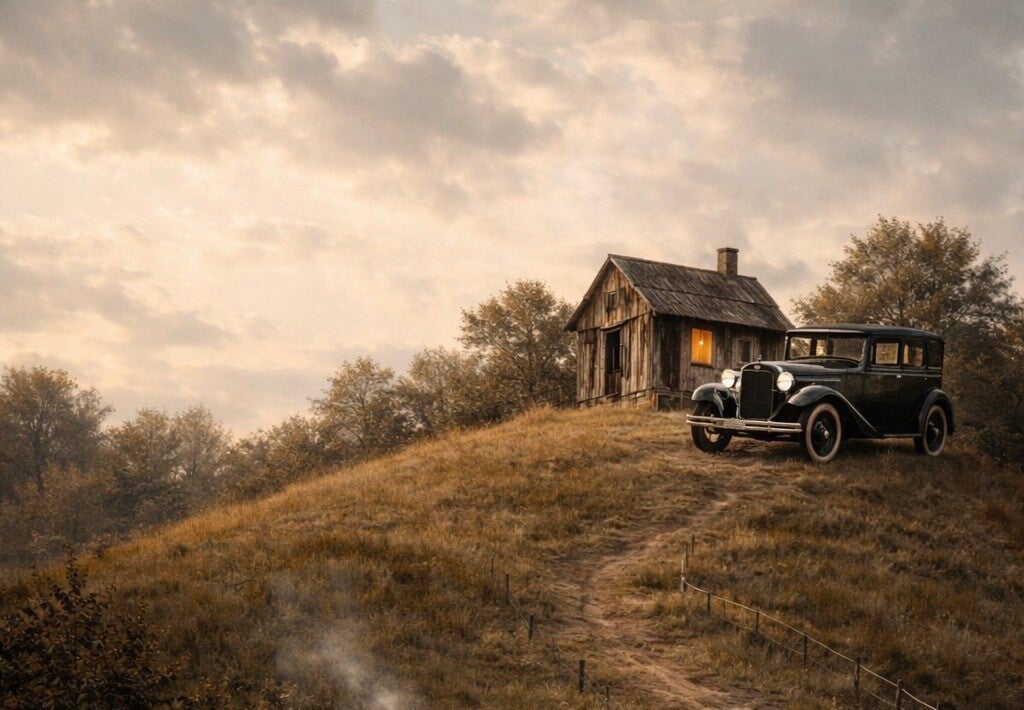 Our story now takes us back to the little shack on the hill above my great-grandparents' equally dilapidated dwelling. There sat, next to the front door of the neighbors’ house, a wonder of the modern era, a Ford Model A. Now, I do not know for sure that it was a Model A since all the details of this story have not been retained as it has been passed down from generation to generation. It then becomes necessary to fill in some of the blanks in order to fulfill my obligations as a storyteller; although it would not be so bad if the readers themselves decided to fill in the blanks by processing information using their own imaginations. For the purpose of this story, I will make up my own description of the automobile, but you may take the liberty of drawing your own conclusions as to what type of car it was, and what its descriptives were. I will maintain that it was a black 1930’s era Ford Model A.